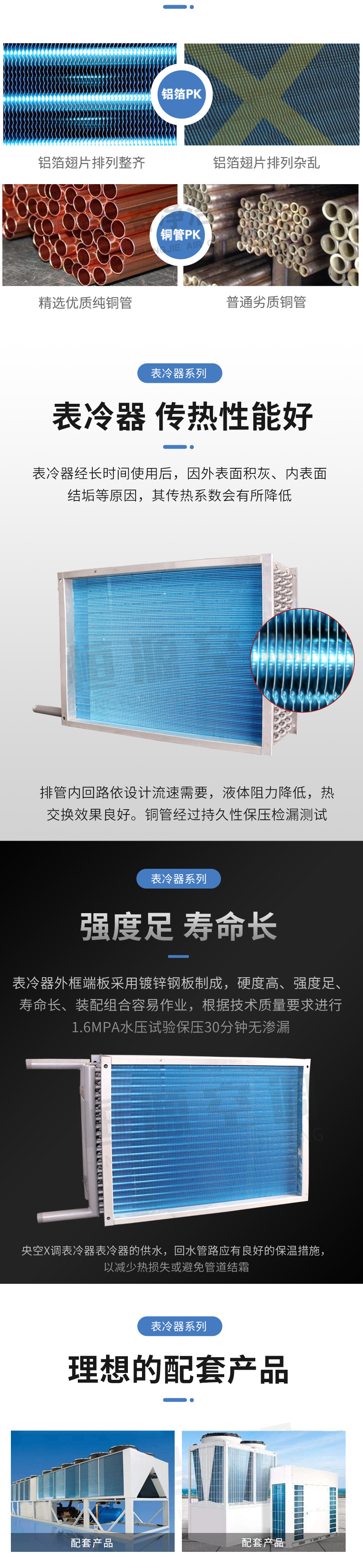靖江市恒源空調設備制造有限公司——親水鋁箔表冷器的熱濕交換是在主體空氣與緊貼換熱器外表面的邊界層空氣之間的溫差和水蒸氣分壓力差作用下進行的。它可以實現兩種空氣處理過程:當邊界層空氣溫度低于主體空氣的露點溫度時,將發生減濕冷卻過程或稱濕冷過程(濕工況);當邊界層空氣溫度雖低于主體空氣溫度,但尚高于其露點溫度時將發生等濕冷卻過程(干工況)。